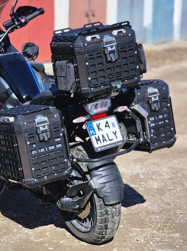 Dodatkową opcją bagażników są bagażniki motocyklowe na kufry boczne w tym wypadku brak modeli uniwersalnych tutaj płyty wykonujemy tylko pod konkretny model kufra.