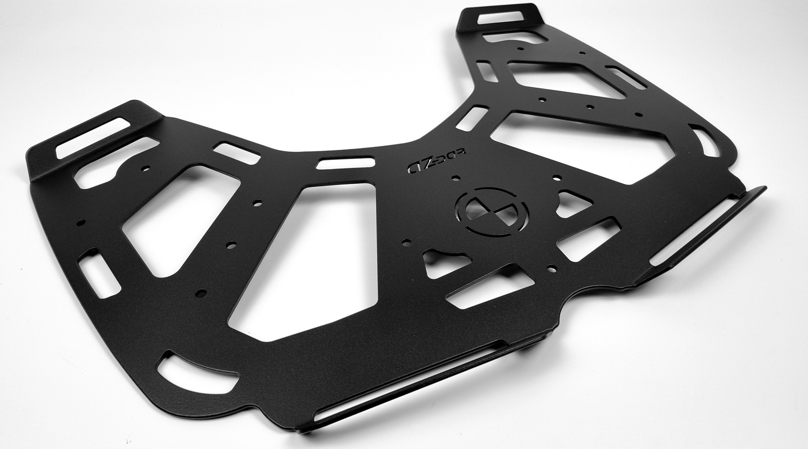 Bagażnik mocowany jest do kufra za pomocą śrub nierdzewnych i regulowanych dystansów gumowych, dzięki czemu możemy go idealnie dopasować do oryginału