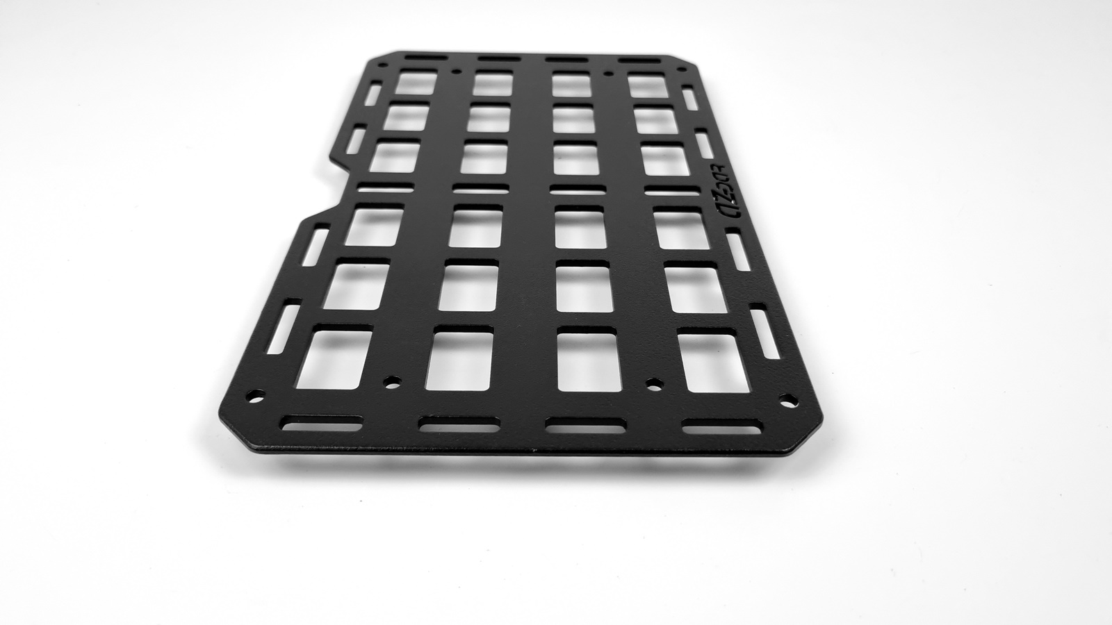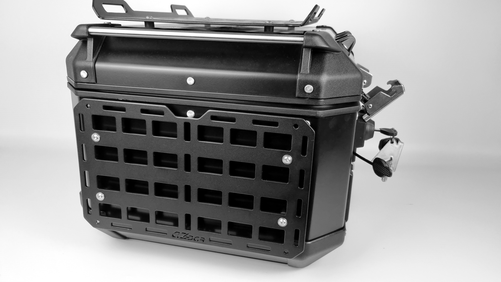 • Panele boczne z mocowaniami molle do zamontowania na bokach kufrów aluminiowych. Dopasowane rozmiarem do większości kufrów aluminiowych centralnych. (300mmx180mm)