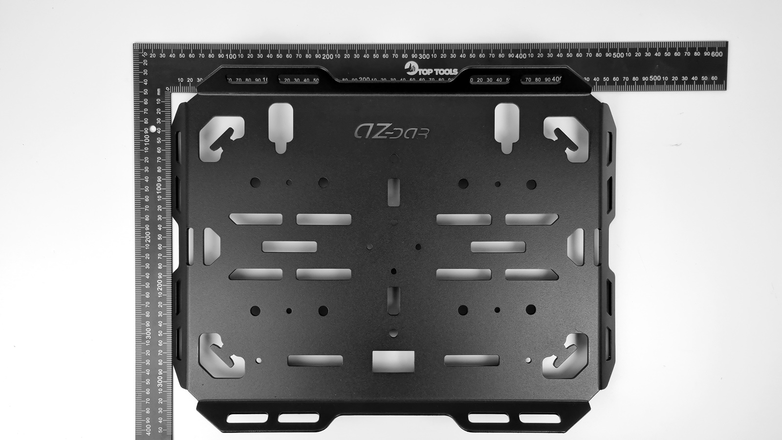 • Płyta posiada szereg nacięć pozwalających na zamocowanie różnych rodzajów bagażu jednocześnie obniża to ciężar bagażnika motocyklowego.